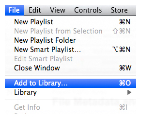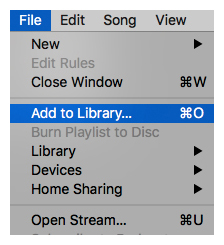 1. If your file is not already in iTunes, select the File menu and choose Add to Library (from Windows or Mac).